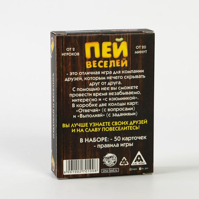 Купить игра для компании "пей веселей" 50 карт от 180 руб. с доставкой до пункта выдачи в Аниве. Интернет магазин ДекаМаркет. Оплата при получении.
